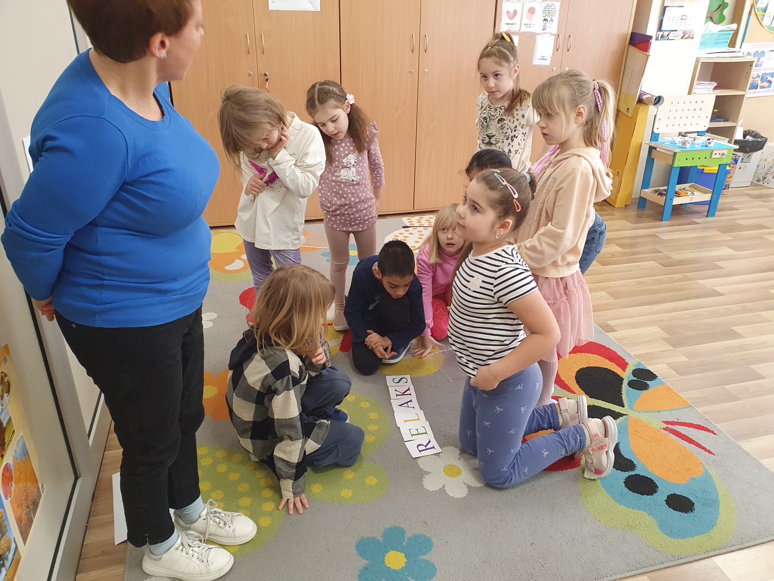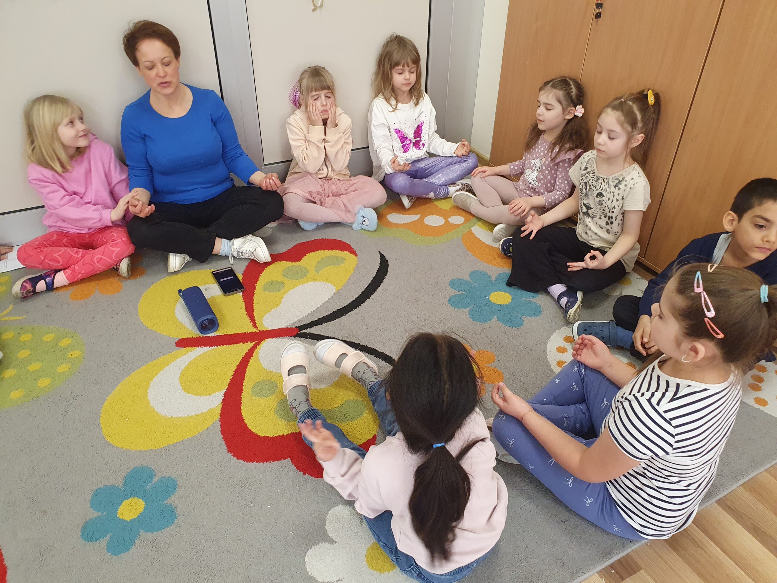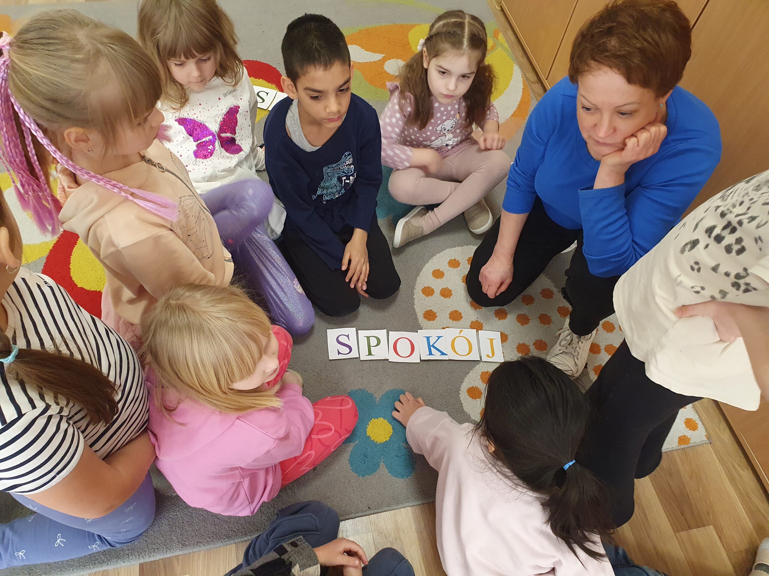 Nauczyciel rozmawia z dziećmi o tym, co to jest spokój