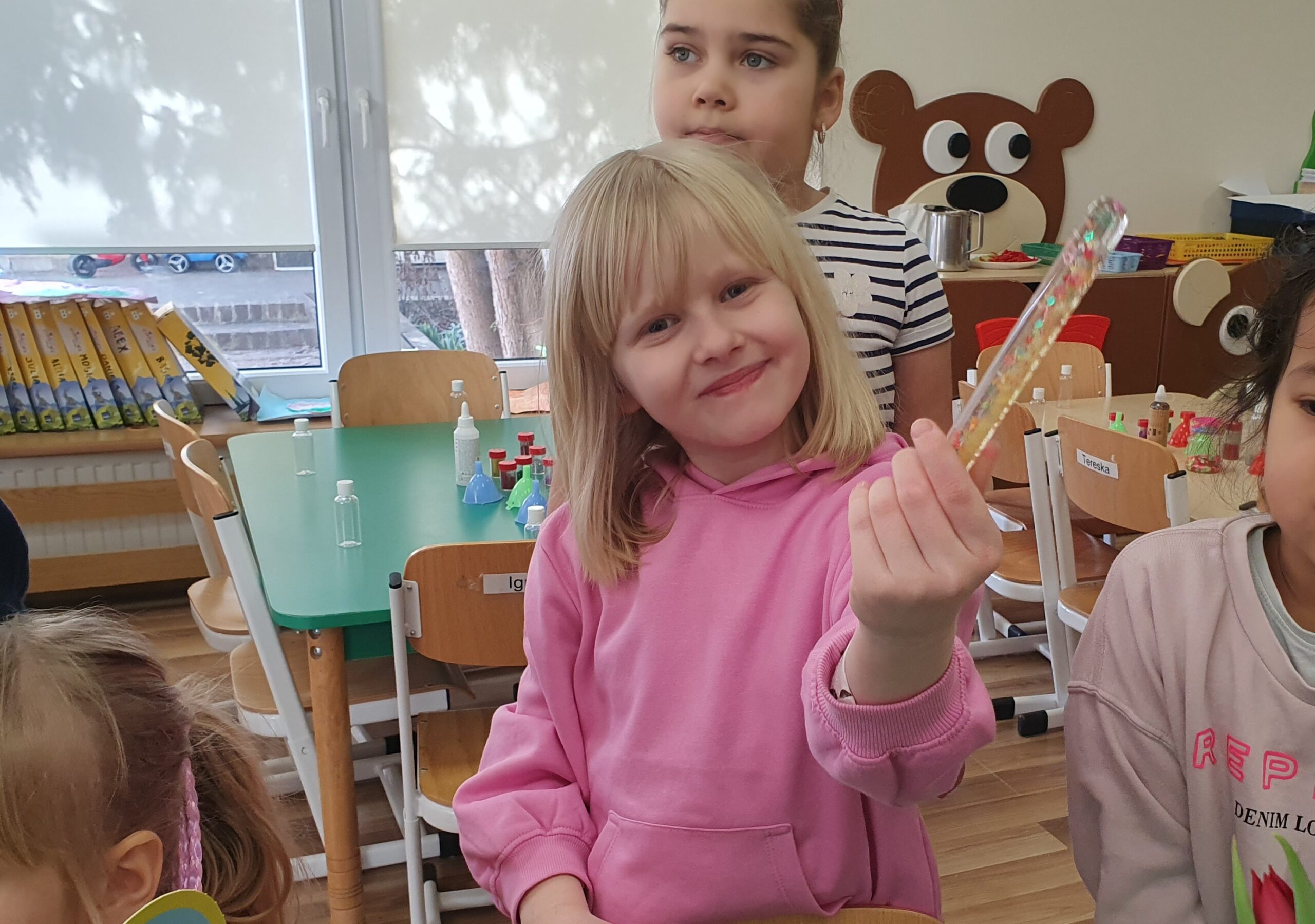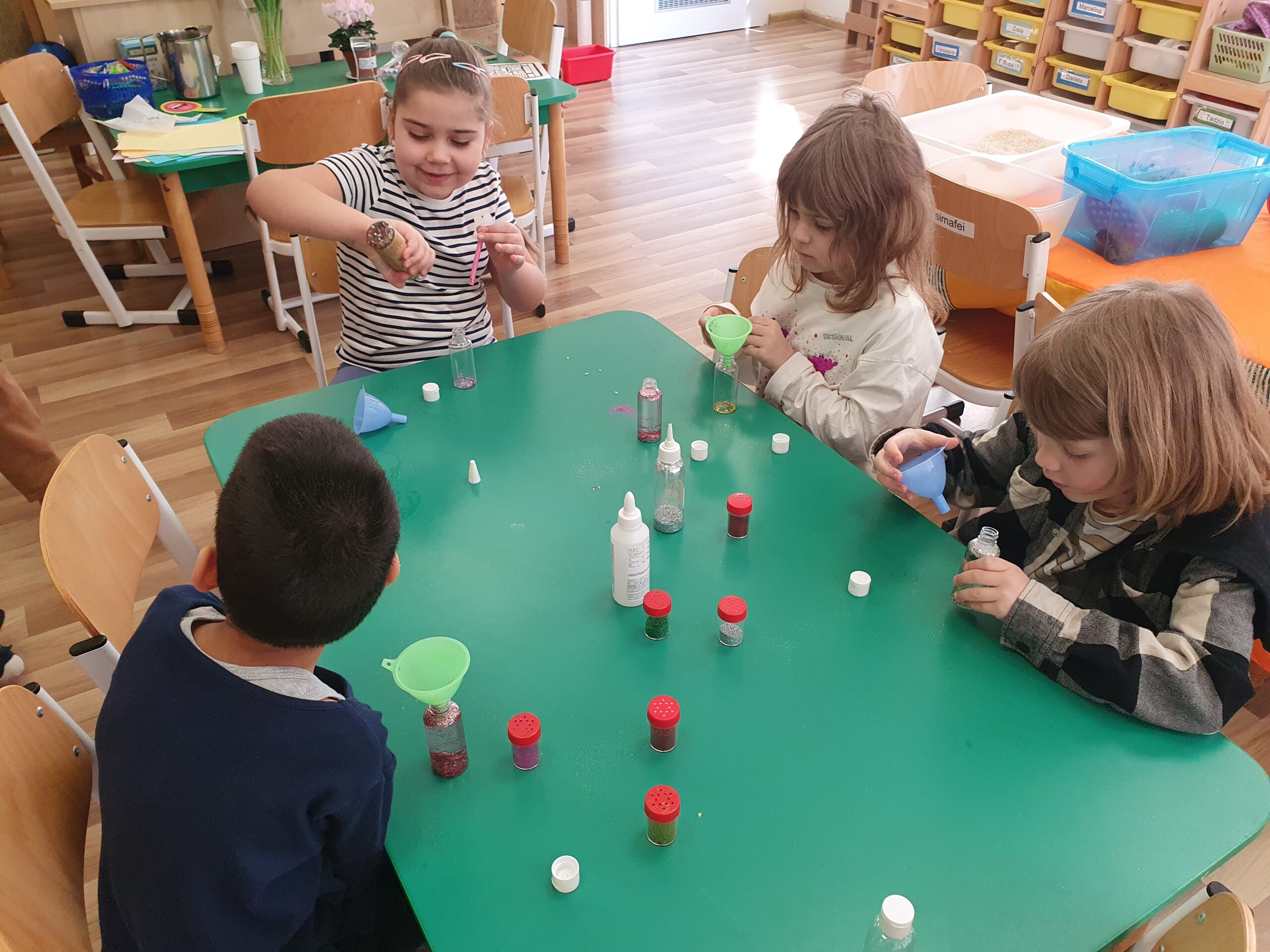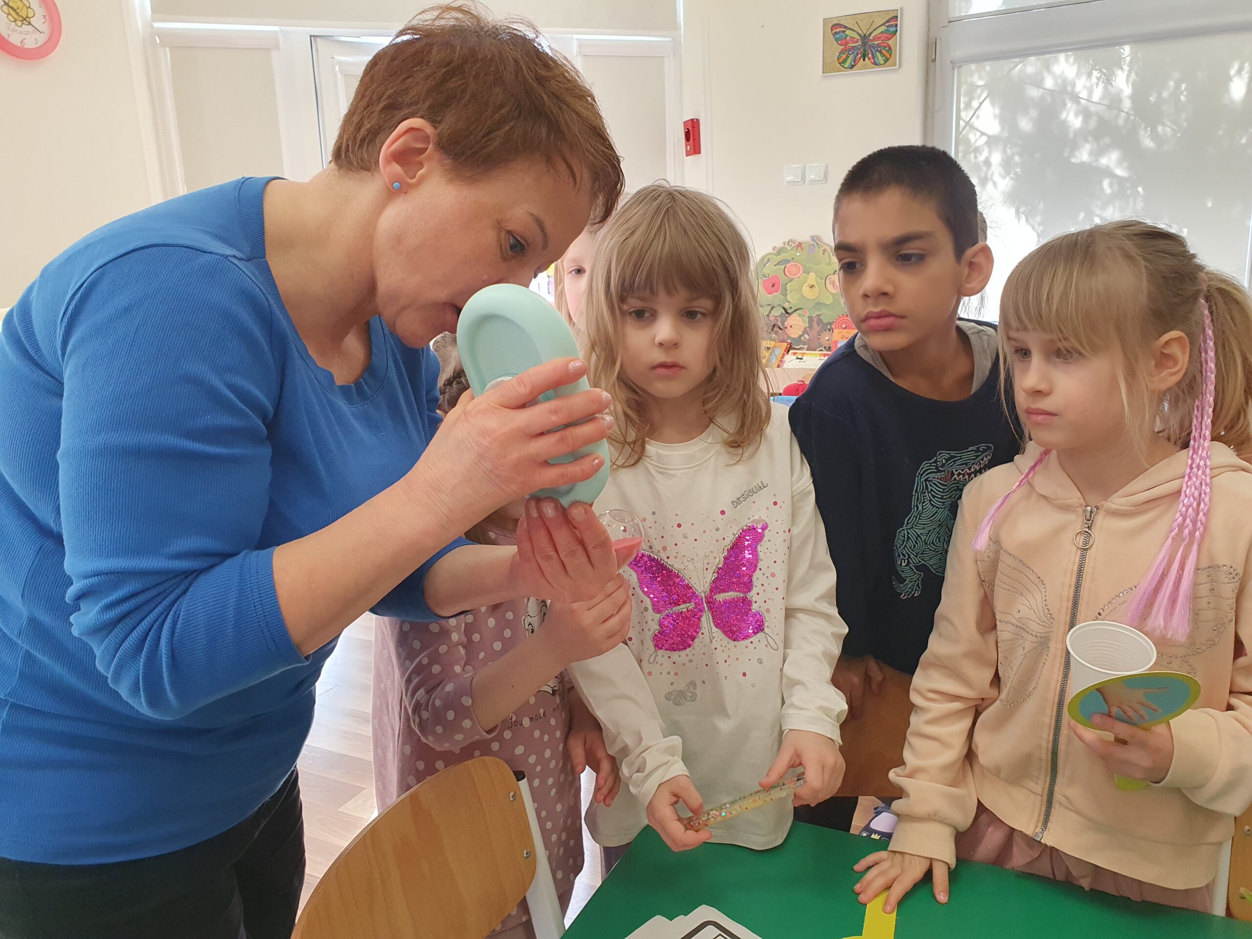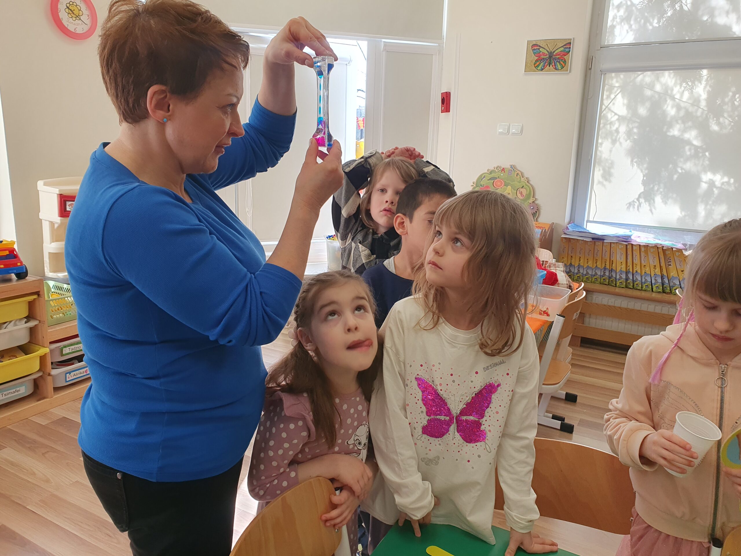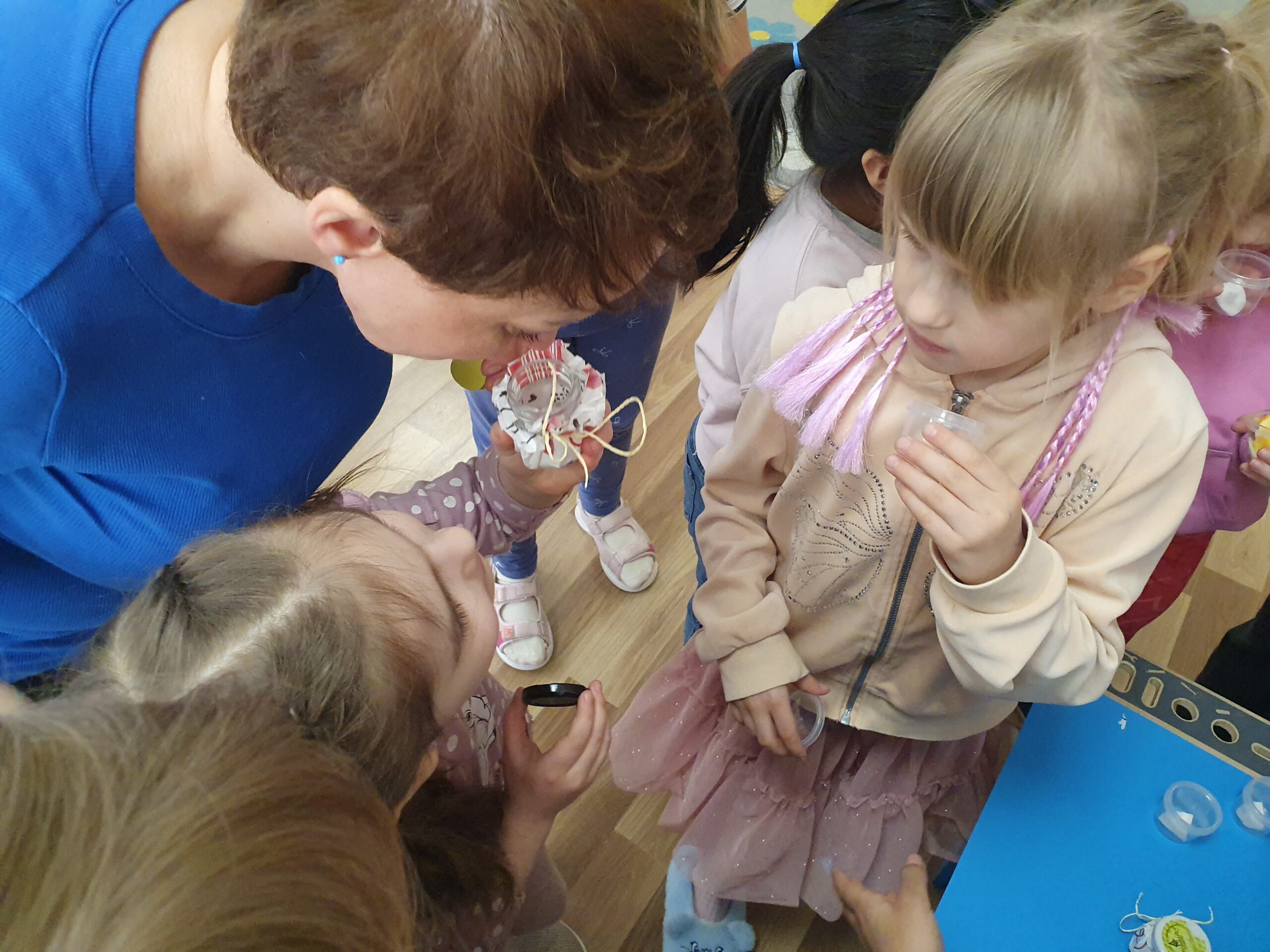 Dzisiaj Żółwiki miały bardzo ciekawe zajęcia o tym, jak znaleźć spokój przy wykorzystaniu własnych zmysłów. Poznawały sposoby na uspokojenie emocji za pomocą wielu ciekawych rekwizytów oraz z pomocą tego, co mamy zawsze przy sobie, czyli własnego oddechu. Było dużo dobrej zabawy, elementy relaksacji, a także okazja do własnoręcznego wykonania uspokajającej buteleczki, pozwalającej na wiele doznań wzrokowych, którą dzieci mogły zabrać do domu. Dziękujemy Pani Małgosi za bardzo ciekawe i przydatne zajęcia!