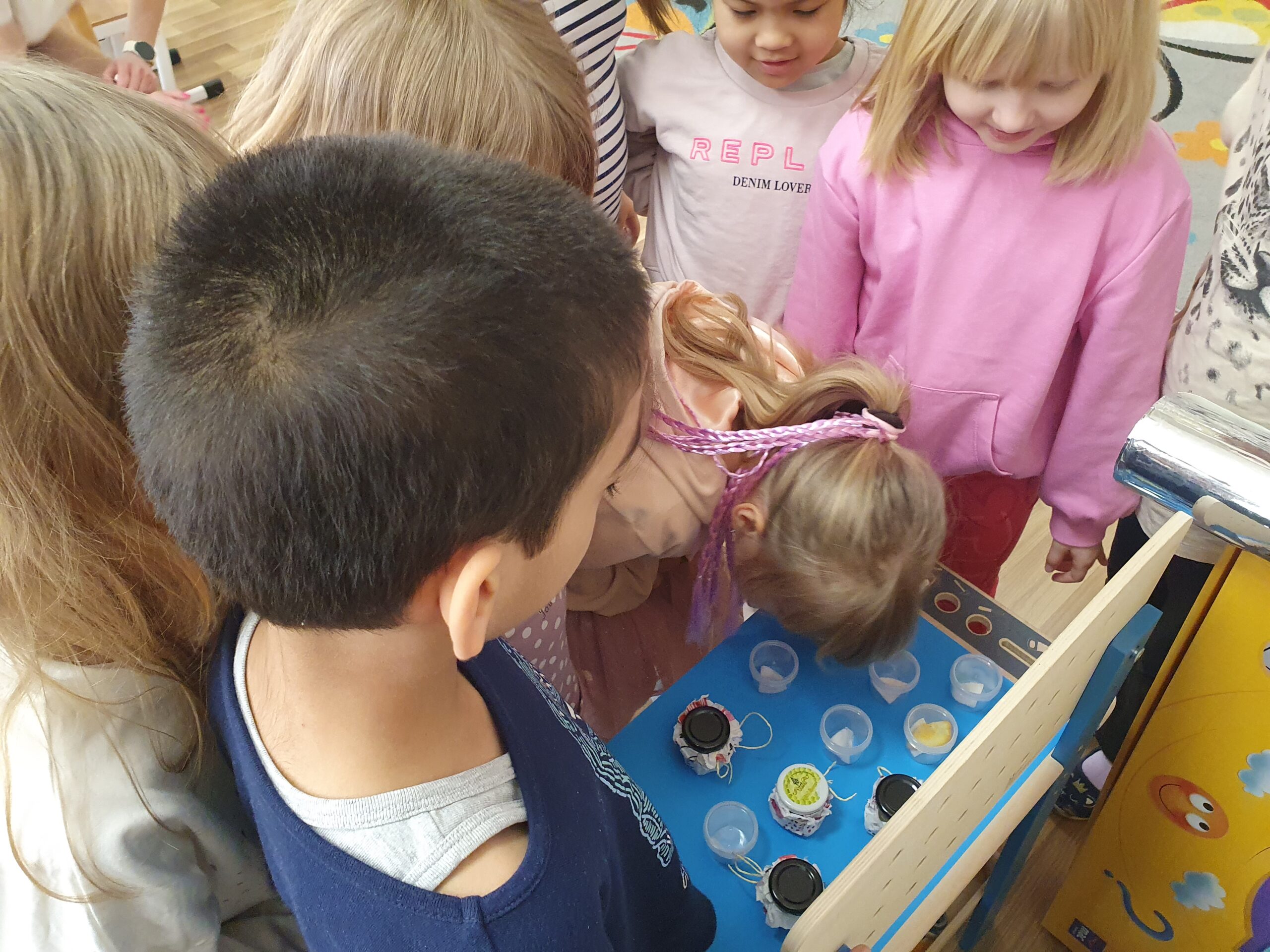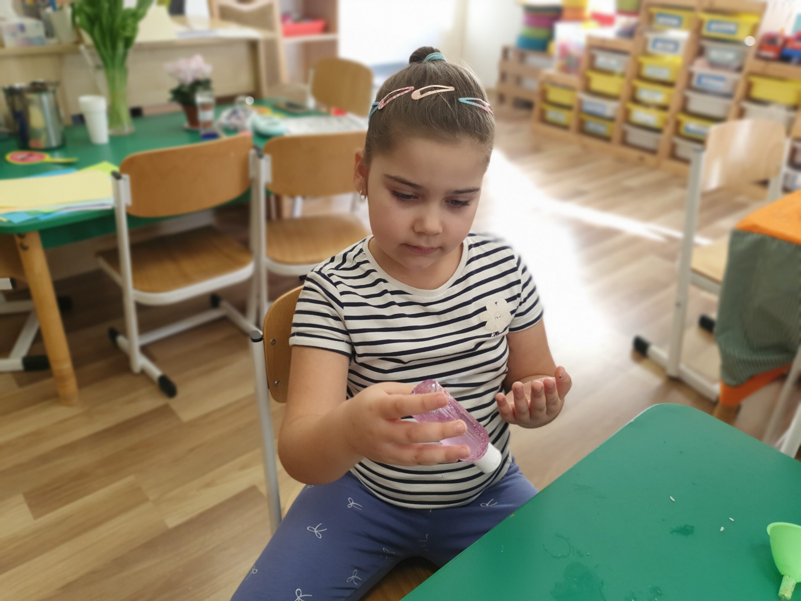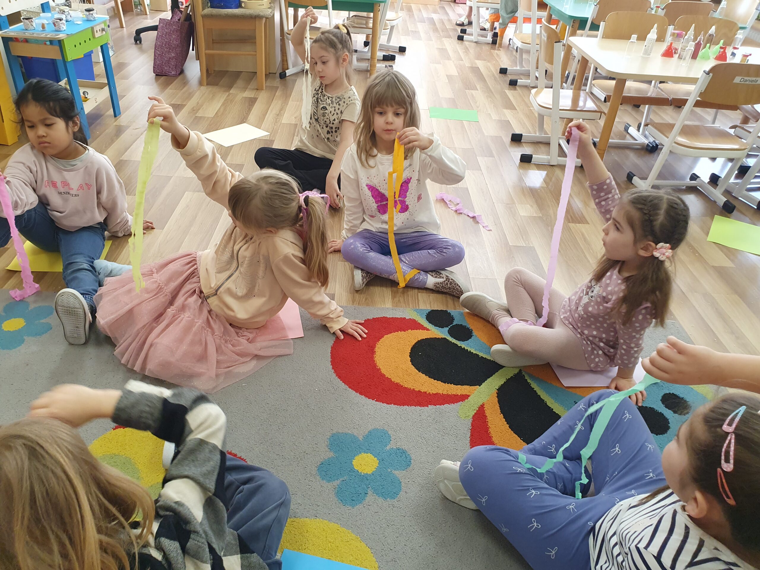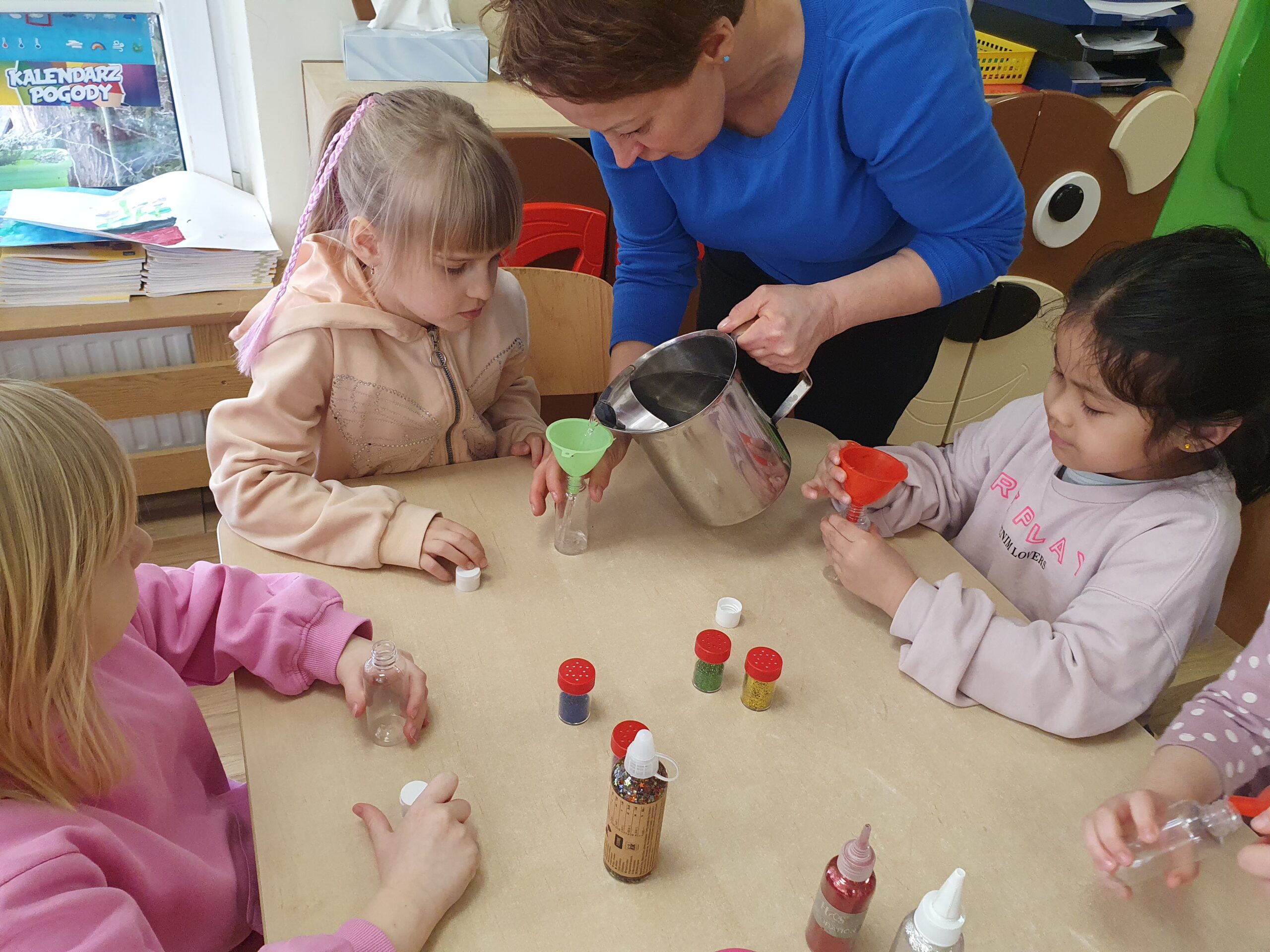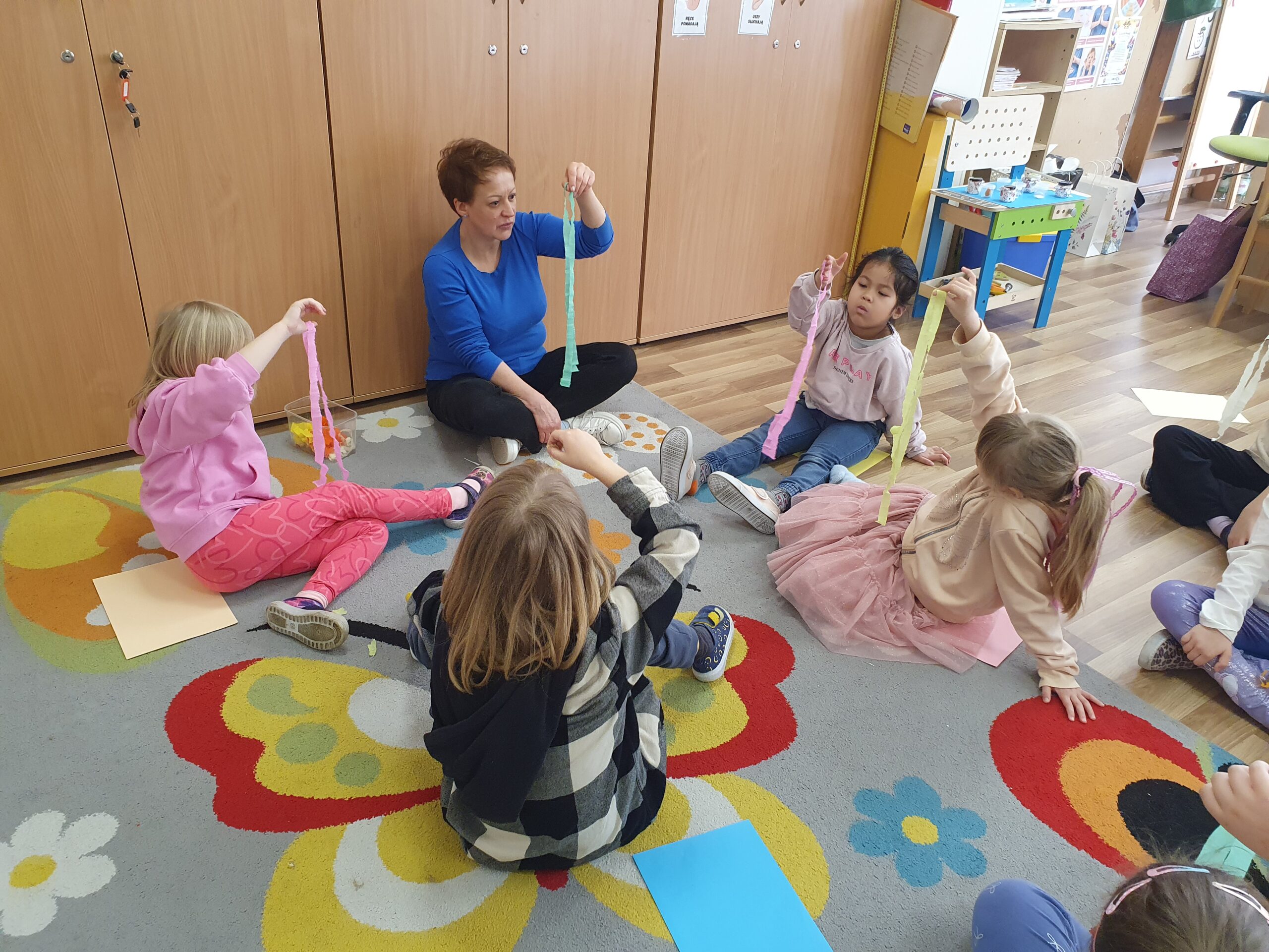 Dzisiaj Żółwiki miały bardzo ciekawe zajęcia o tym, jak znaleźć spokój przy wykorzystaniu własnych zmysłów. Poznawały sposoby na uspokojenie emocji za pomocą wielu ciekawych rekwizytów oraz z pomocą tego, co mamy zawsze przy sobie, czyli własnego oddechu. Było dużo dobrej zabawy, elementy relaksacji, a także okazja do własnoręcznego wykonania uspokajającej buteleczki, pozwalającej na wiele doznań wzrokowych, którą dzieci mogły zabrać do domu. Dziękujemy Pani Małgosi za bardzo ciekawe i przydatne zajęcia!