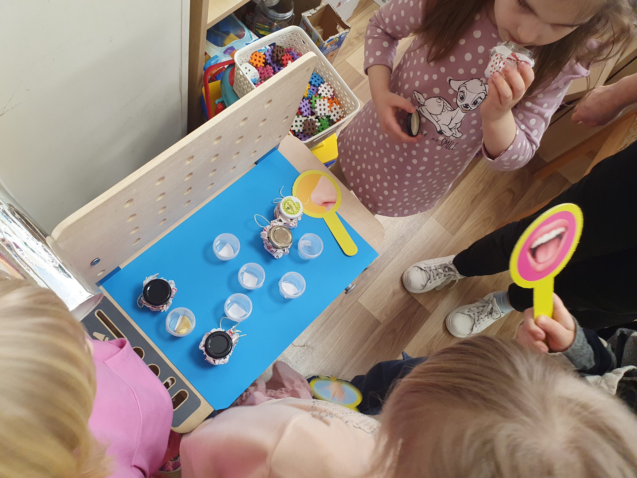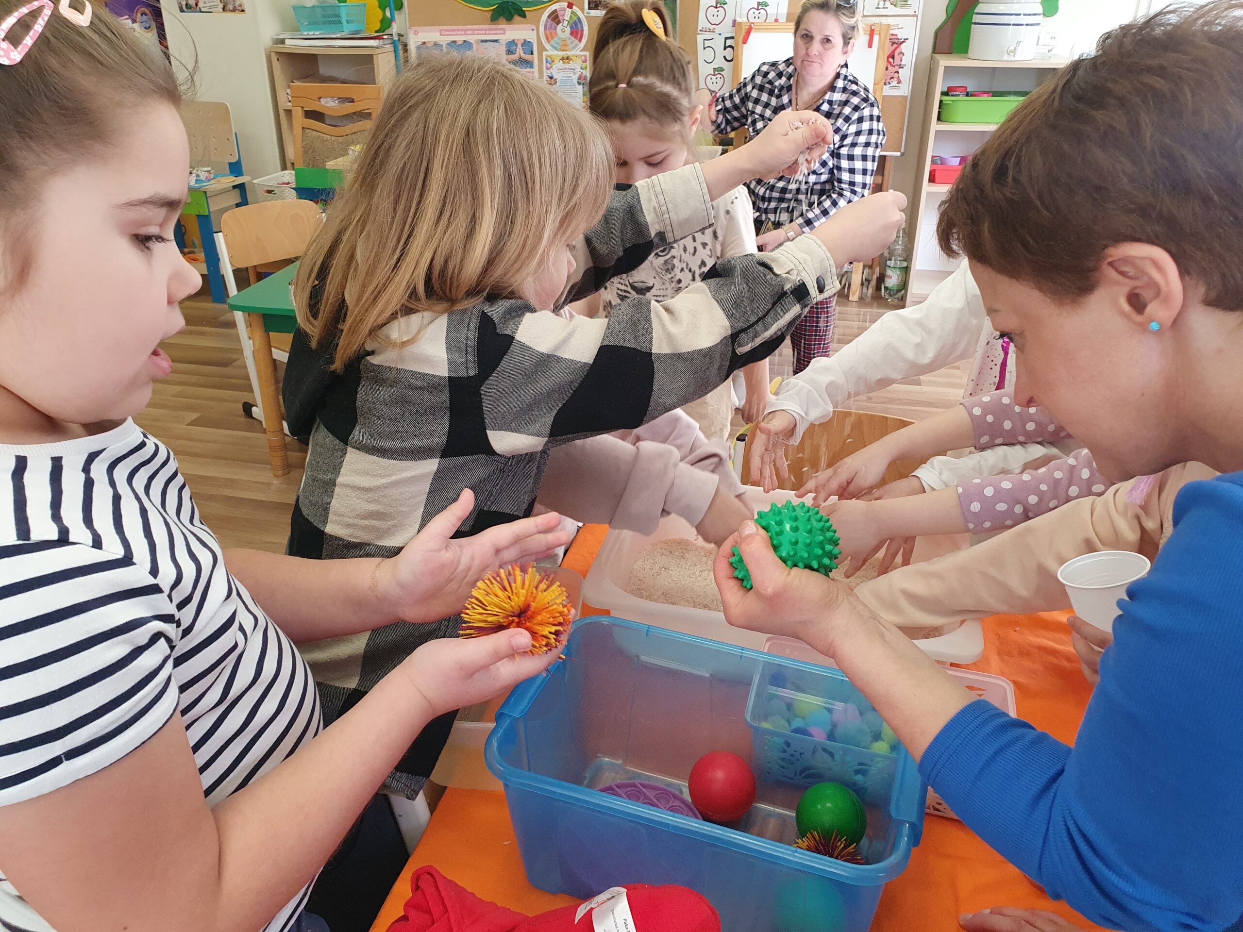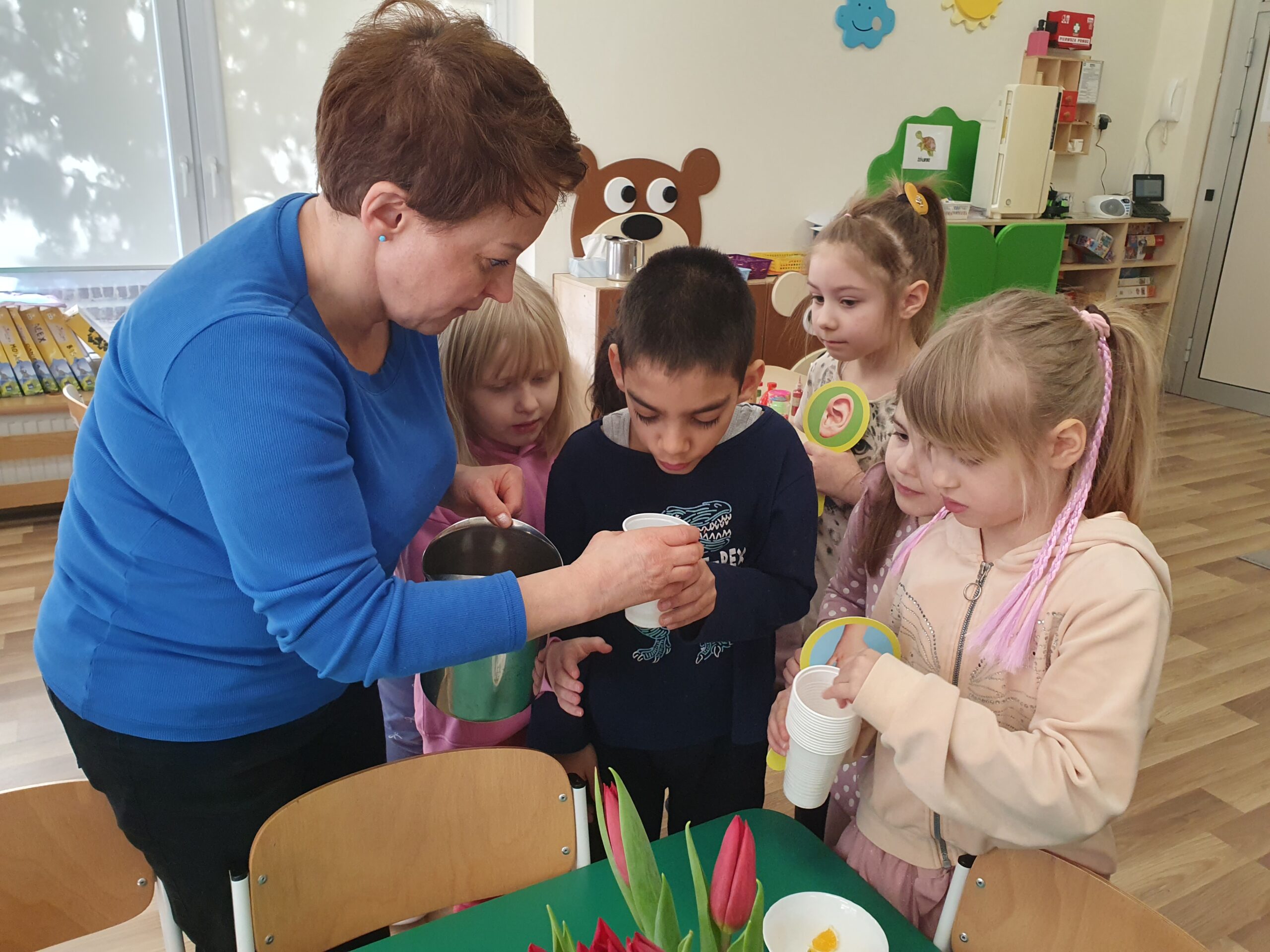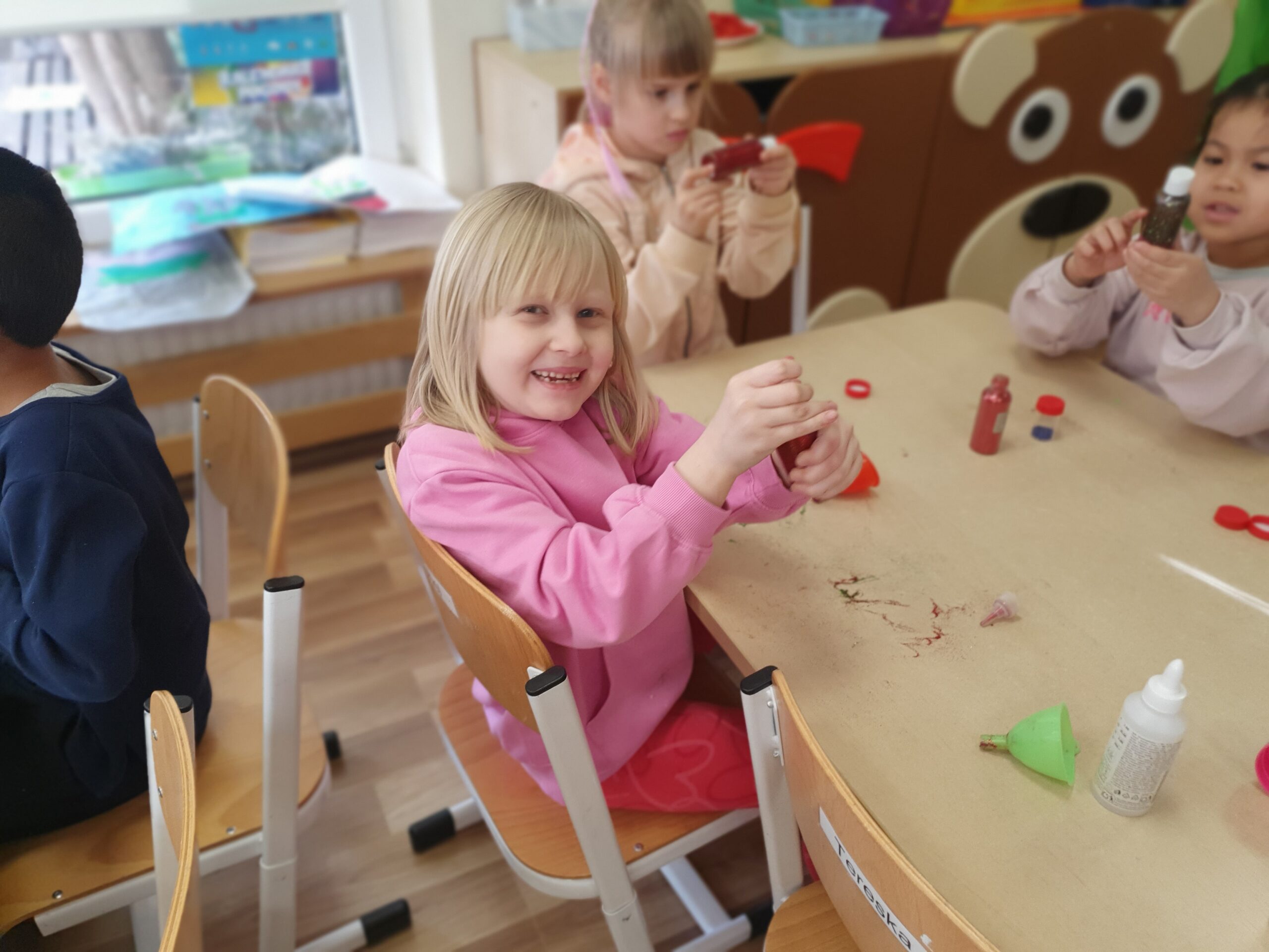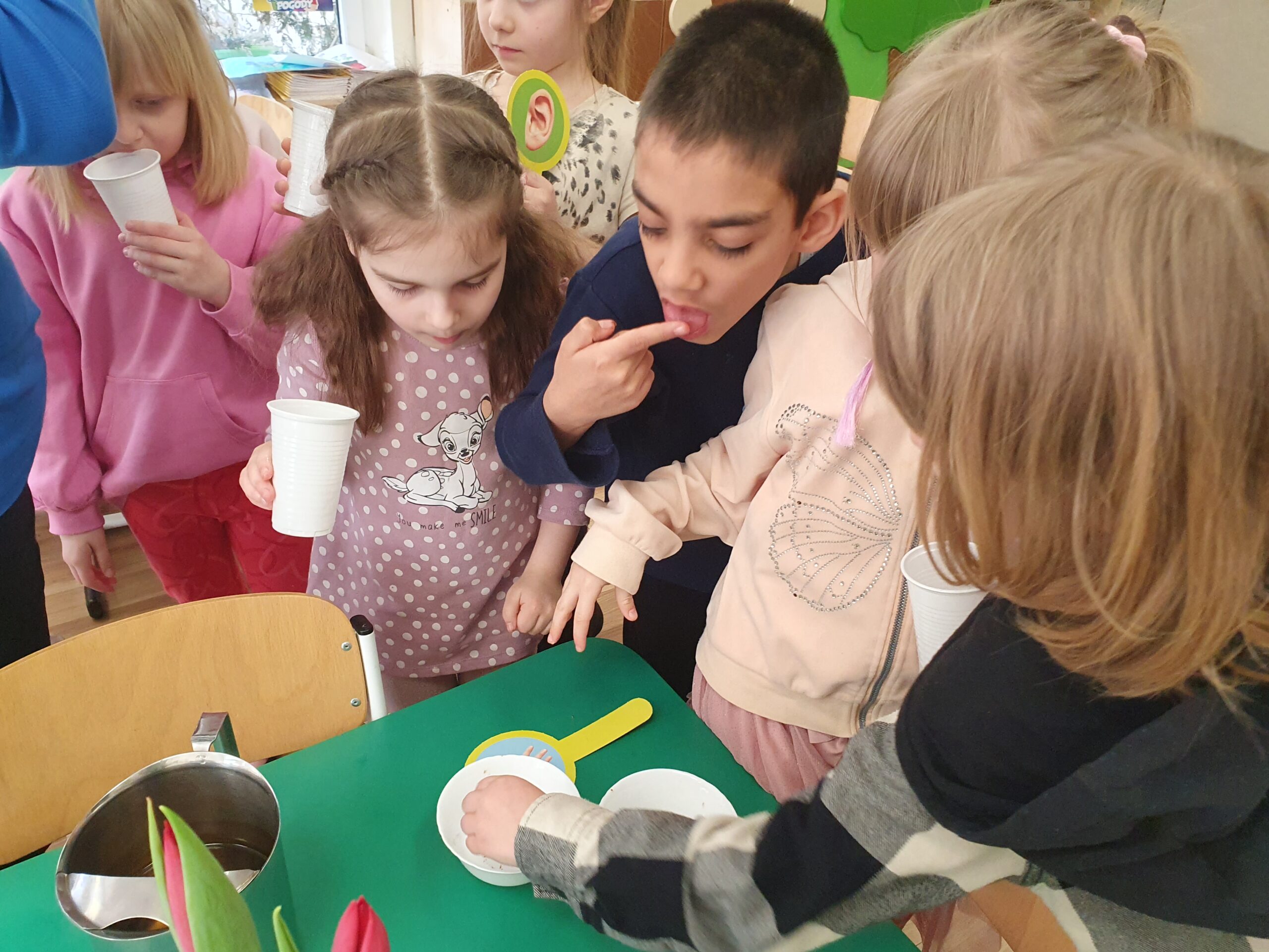 Dzisiaj Żółwiki miały bardzo ciekawe zajęcia o tym, jak znaleźć spokój przy wykorzystaniu własnych zmysłów. Poznawały sposoby na uspokojenie emocji za pomocą wielu ciekawych rekwizytów oraz z pomocą tego, co mamy zawsze przy sobie, czyli własnego oddechu. Było dużo dobrej zabawy, elementy relaksacji, a także okazja do własnoręcznego wykonania uspokajającej buteleczki, pozwalającej na wiele doznań wzrokowych, którą dzieci mogły zabrać do domu. Dziękujemy Pani Małgosi za bardzo ciekawe i przydatne zajęcia!