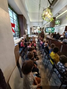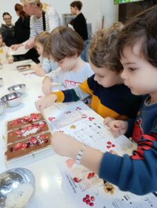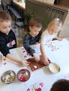 Odwiedziliśmy Manufakturę Czekolady i braliśmy udział w warsztatach czekoladowych. Dzieci stworzyły swoją tabliczkę czekolady oraz poznały proces powstawania słodkości.