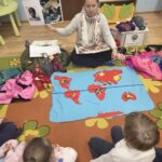 4.02.2026 Żyrafki wzięły udział w Warsztatach podróżniczych „Dzieci Świata”. Poznały ciekawostki o kontynentach, zamieszkujących je ludziach oraz o podobieństwach i różnicach między nimi a dziećmi mieszkającymi w innych krajach. Ponieważ do grupy Żółwików uczęszcza wiele dzieci pochodzących z innych krajów, wszyscy mogli zobaczyć, gdzie te kraje znajdują się na mapie Świata. To były bardzo interesujące warsztaty. Bardzo dziękujemy Radzie Rodziców za ich sfinansowanie.