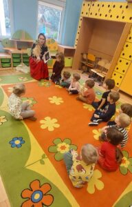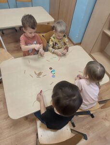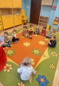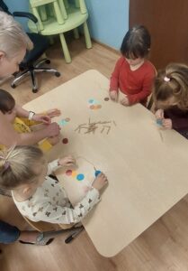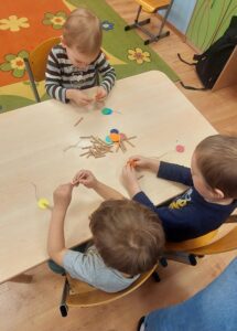 Dziś Delfinki brały udział w Warsztatach Wielkanocnych. Dzieci poznały obrzędy świąteczne oraz wiosenne i stworzyly wspólną ozdobę Wielkanocną.